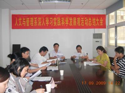 9月17日下午,人文与管理系深入学习实践科学发展观活动总结大会在系部楼二楼会议室举行。人文与管理系教工党员和部分员工党员参加大会,会议由人文与管理系副主任刘华主持。纪委书记李刚出席会议并作讲话。