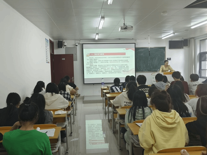 经理王国平以《学习新思想青春建新功》为题,详细为同学们解读了习近平新时代中国特色社会主义思想,鼓励同学们追求真理、磨练“真功”,创造真绩。班主任成铭介绍了党纪学习教育有关要求,解读了《中国共产党纪律处分条例》新修订内容。