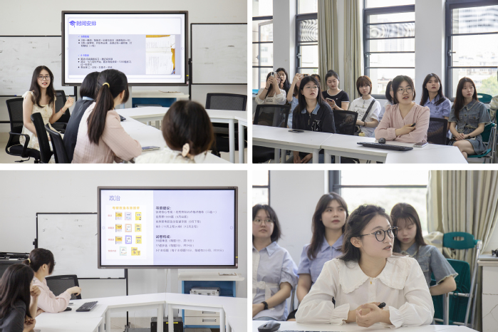 2024届应用心理学专业员工李梦晴、魏鑫怡、范茹梦、李文静、宋倩雯五位优秀学子就学习方法、考研目标、择校策略、考研课程、资料准备以及心态调整等方面分享了自身考研经历和心得体会,就同学们提出的各种问题和疑惑进行了详细的解答,现场互动积极,气氛热烈。