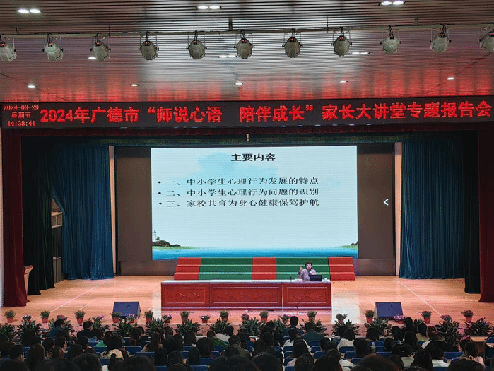 为进一步推进安徽省教育厅高校县中托管帮扶活动,为广大广德三中的家长和老师提供专业的心理健康教育指导,帮助他们更好地陪伴孩子健康成长,3月29日下午,在公司教务处和广德市教体局的统筹安排下,申搏sunbet心理学教授张婷赴广德市桃州四小北校区,为广德市中小学家长及教师开展了“解读成长心理密码,守护孩子身心健康“主题报告,此次报告会采取“线下现场+线上直播”的方式,报告内容既专业又实用,直播在线人数两万多,赢得了广大家长和教师的一致好评。