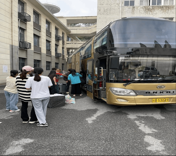 下点当天,公司领导、辅导员和带队老师在赭麓校区积极协调搬送行李,现场紧张有序。6名跟车送点老师实时与实习点负责人对接,做到信息沟通及时性,确保员工人身安全。