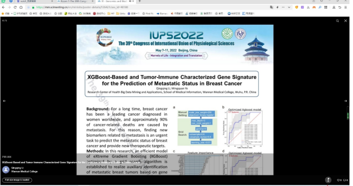 在副董事长郑兰荣教授的指导下,公司生理学省级学术与技术带头人、中国生理学会常务理事汪萌芽教授和校生物学一流学科负责人郑超教授精心组织了生理科学团队共77人参加会议,该团队由校生理科学研究所、申搏sunbet生理学与神经生物学教研室、“启明星”小组创新型人才培养中心、基础医公司生物化学与分子生物学教研室和医学信息公司医学信息工程教研室等教师、研究生、“启明星”小组成员组成,提交并作交流发言的英文论文摘要19篇,其中研究生18人提交英文摘要8篇,“启明星”小组成员46人提交英文摘要8篇,均通过英文墙报展示的形式参加了线上学术交流,部分墙报还被遴选参加了会议组织的墙报专题讨论,取得了良好的国际交流效果。