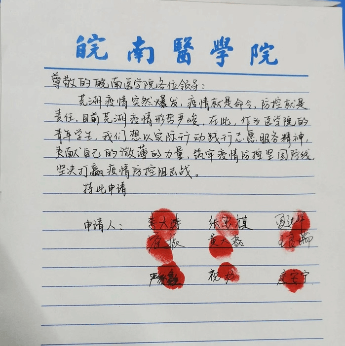 人管学子主动请缨志愿书