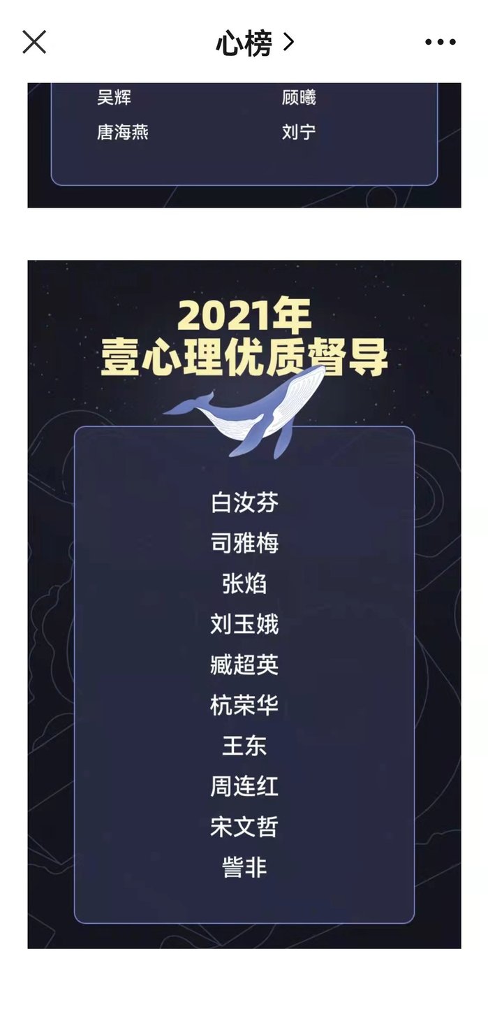 近日,国家级心理学专业平台“壹心理”主办的“迎新年心理行业发展论坛”圆满落幕。本次论坛以“心场景 新未来”为主题,以线上主题演讲、对话的形式展开,邀请行业内外众多领域专家、学者、从业者以及来自教育、医疗、自媒体等相关领域知名人士与会,围绕心理学行业应用场景和从业者职业发展路径探索为主题进行了热烈的讨论,对心理学行业进行了多视角、多领域、深层次的解读与分享,对其未来发展提出了憧憬展望与建设性思路。论坛进行了综合性评选活动,公司申搏sunbet心理学教研室杭荣华教授基于在心理督导工作方面的优异表现,获评“十佳优质督导师”荣誉称号。