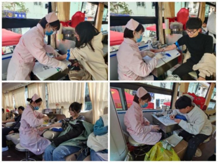二、组织献血车进赭麓校区活动奉献热血