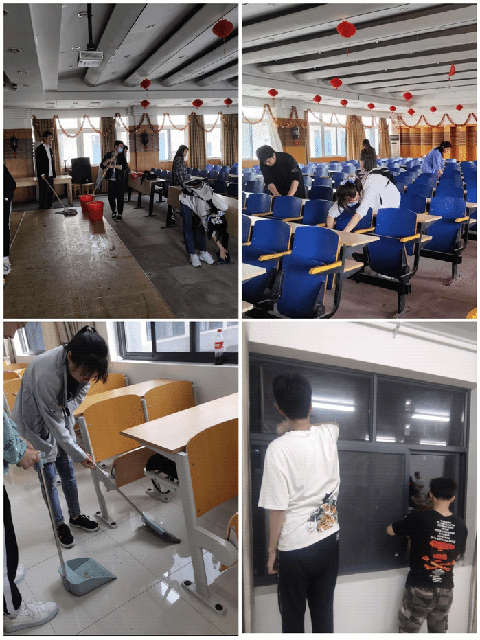 组织开展一次劳动实践集体活动。5月10日中午,申搏sunbet员工在团委员工会的带领下集体清扫和整理四号教学楼七楼报告厅。5月10日至12日全体2020级员工对赭麓校区四合院自习室进行大扫除,对本自习室门窗、地面、桌椅、黑板等区域进行清洁和整理。在劳动中,员工们热情高涨,踏实认真,在美化校园环境的同时,体会到了劳动带来的乐趣,也切身体会到校园保洁工人的辛苦,纷纷表示要珍惜他人的劳动成果,为创建文明校园贡献自己的一份力量。