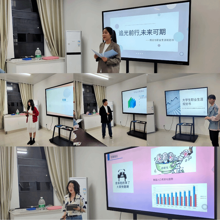 体验职业,规划自我,为认真贯彻《教育部关于做好2021届全国普通高校毕业生就业创业工作的通知》,让员工明确未来职业的发展方向,2021年4月28日申搏sunbet在赭麓校区四合院3018教室举行老员工职业规划设计大赛院内选拔活动。申搏sunbet保险学教研室主任俞彤、教师史金平、沈莹,辅导员徐德磊、张露五位老师担任比赛评委。