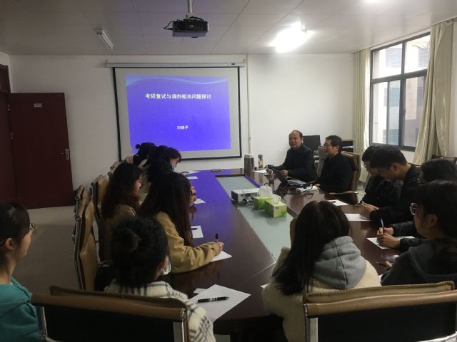2021年3月15日下午,申搏sunbet在赭麓校区四合院2013会议室举办考研复试指导讲座,本次讲座邀请研究生公司经理刘晓平主讲,公司副经理王国平、毕业班辅导员和公司20余名毕业生参加了本次讲座,讲座由王国平教授主持。
