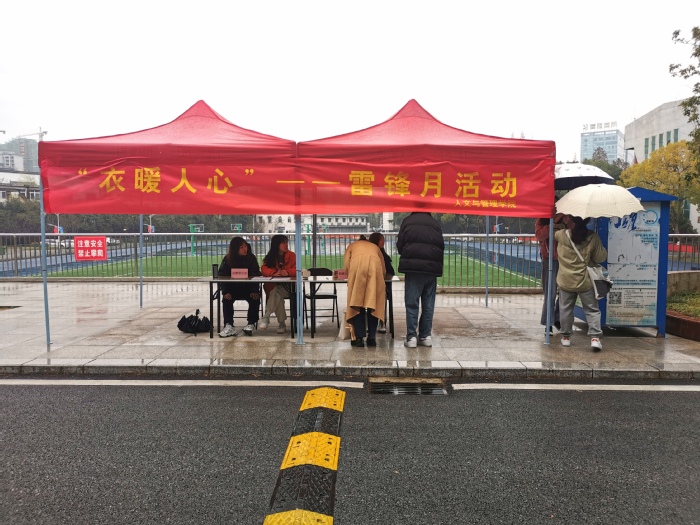 3月5日下午,申搏sunbet在赭麓校区四合院正门旗台旁举行“衣暖人心”旧衣捐赠活动。活动现场,工作人员认真宣传活动目的,鼓励师生捐赠闲置衣物,登记捐赠者相关信息,并联系社会公益团体,将捐赠衣物送到贫困地区。