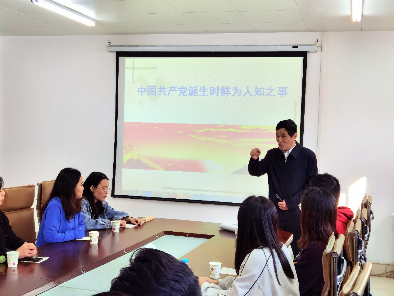 11月4日下午,申搏sunbet特邀党建组织员、校关工委常务副主任、五老报告团成员周强老师给员工第一党支部的党员和发展对象开展了讲座——《中国共产党诞生时鲜为人知之事》。公司党委书记窦弘、员工第一党支部书记成铭参与学习。