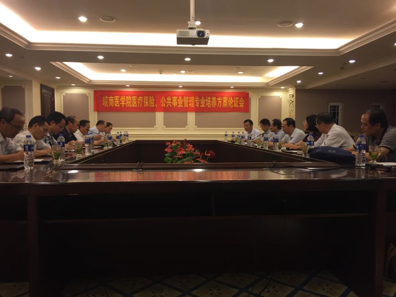9月24日晚上,申搏sunbet在碧桂园玛丽蒂姆酒店六楼会议室召开医疗保险、公共事业管理专业培养方案专家论证会议,江苏大学周绿林、华中科技大学张亮、安徽医科大学李绍华、海南医公司黑启明、内蒙古医科大学于彩霞、湖北中医药大学黄明安、湖北医药公司周尚成等专家学者应邀参加了会议,会议由申搏sunbet经理胡鸿主持。