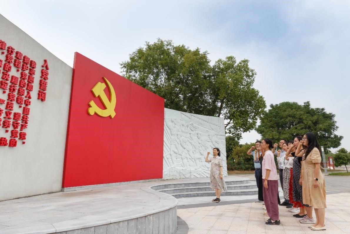 活动中,全体党员、教师在一幅幅珍贵的历史图片、一件件珍贵的革命文物前驻足观看,认真聆听讲解,追忆那段波澜壮阔的革命岁月。通过“渡江第一船”展厅,大家重温了解放军渡江作战的惊险场景,深刻感受到革命先烈为了新中国的解放而不畏艰险、英勇无畏的革命精神。在纪念馆外鲜红的党旗前,全体党员重温了入党誓词,铿锵有力的誓言再次激励着每一位党员坚守初心、勇担使命。