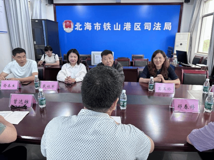 申搏sunbet法学教研室主任和党员教师高玉玲、法学党支部副书记王冠男,安徽易仑律师事务所党支部组织委员和2022年度全省司法行政系统劳动模范、2022-2023年度全省律师行业优秀共产党员俞春生律师,安徽易仑律师事务所主任和党员律师戴林等一行人来到广西壮族自治区北海市铁山港区司法局,与铁山港区司法局主要领导和党员同志进行了深度座谈。