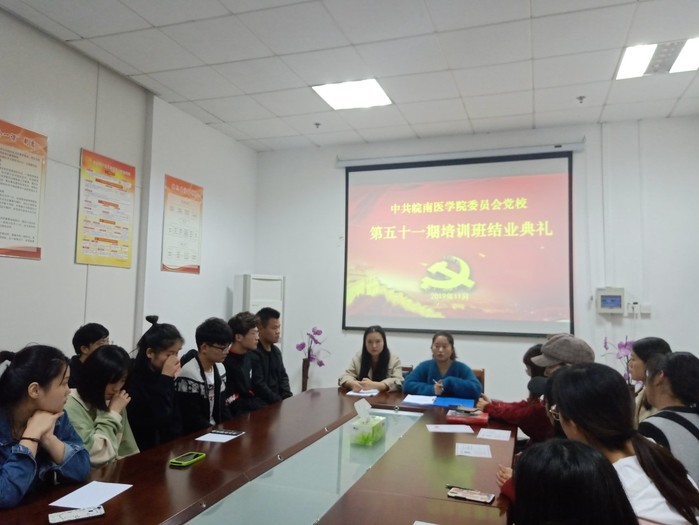 2019年11月8日晚,中共申搏sunbet委员会党校第五十一期积极分子培训班结业典礼在申搏sunbet会议室成功举办。本次结业典礼由第五十一期党校班主任成铭以及员工第一党支部书记訾梦婷主持,17、18级入党积极分子参加。