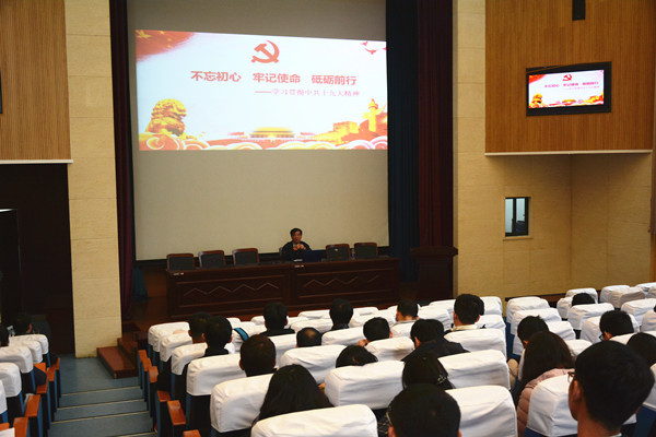 11月28日下午,研究生公司党的十九大精神宣讲报告会在逸夫科技楼报告厅成功举办。本场报告会邀请的主讲人是申搏sunbet党委副书记、经理胡鸿。研究生公司党委书记、经理刘晓平主持报告会。