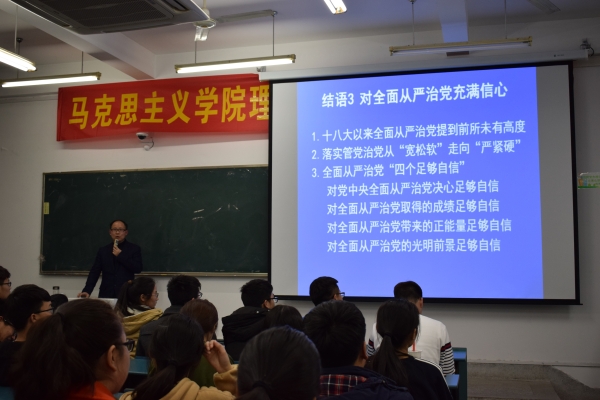 思想引领齐聚力,文化认同勇担当。为进一步树立和践行社会主义核心价值观,强化理想信念教育,2017年3月7日晚七点,申搏sunbet在1102教室举办了十八届六中全会以来的理论热点问题宣讲。本次讲座诚邀到马克思主义公司副经理、陶庭马副教授主讲,申搏sunbet入党积极分子和全体党员同学共计150余人聆听了讲座。