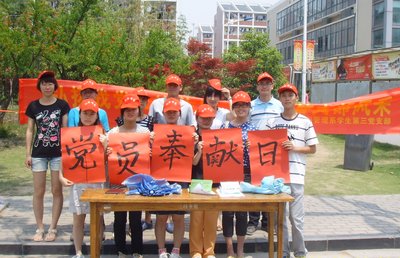 | 为深入开展“创先争优”活动, 5月17日上午,人文与管理系第三员工党支部全体员工党员在党支部书记吴映辉的指导下,在公司二食堂门口开展了“弘扬我党先进作风,展现人管支部风采”的党员奉献日活动。