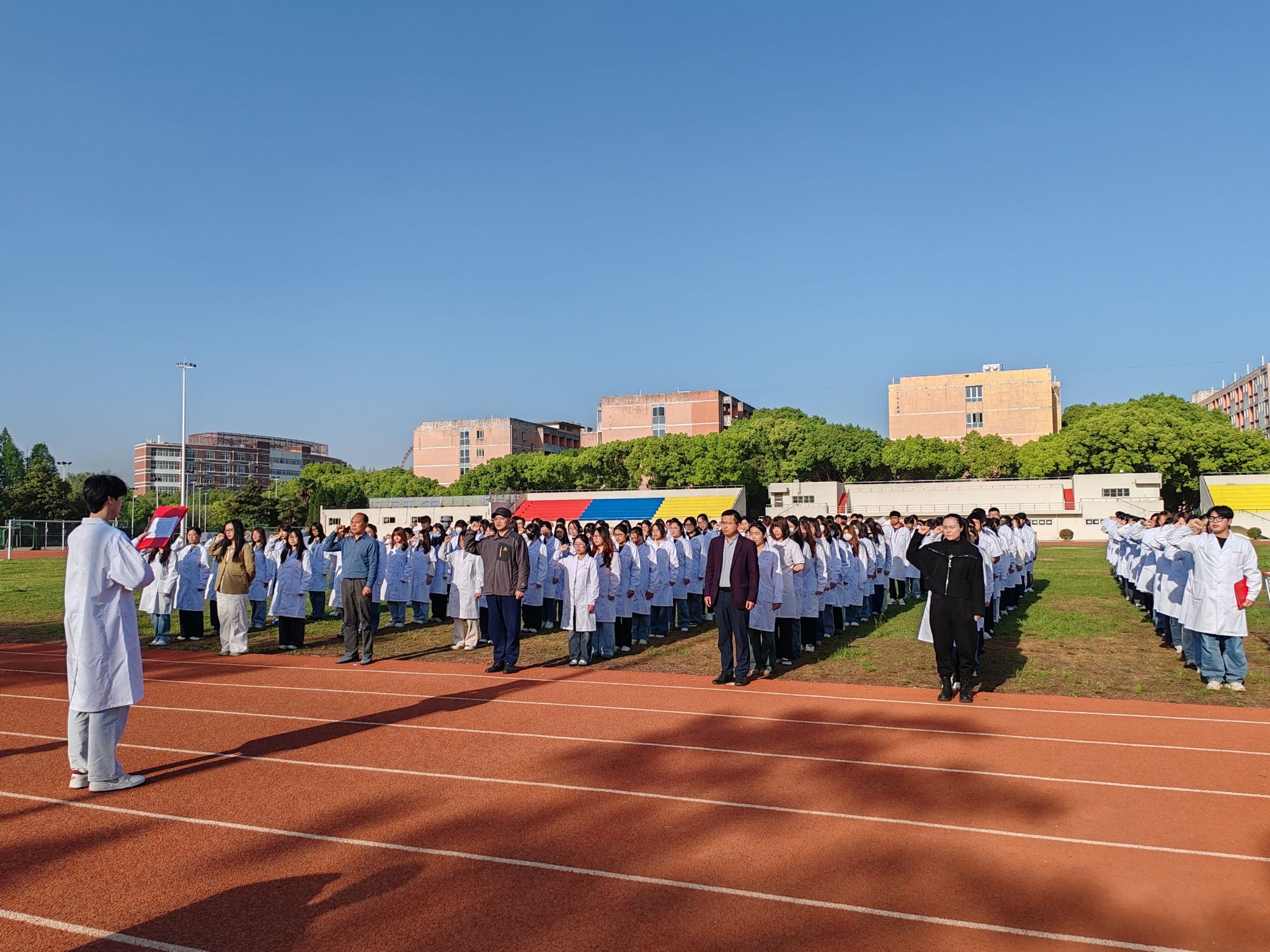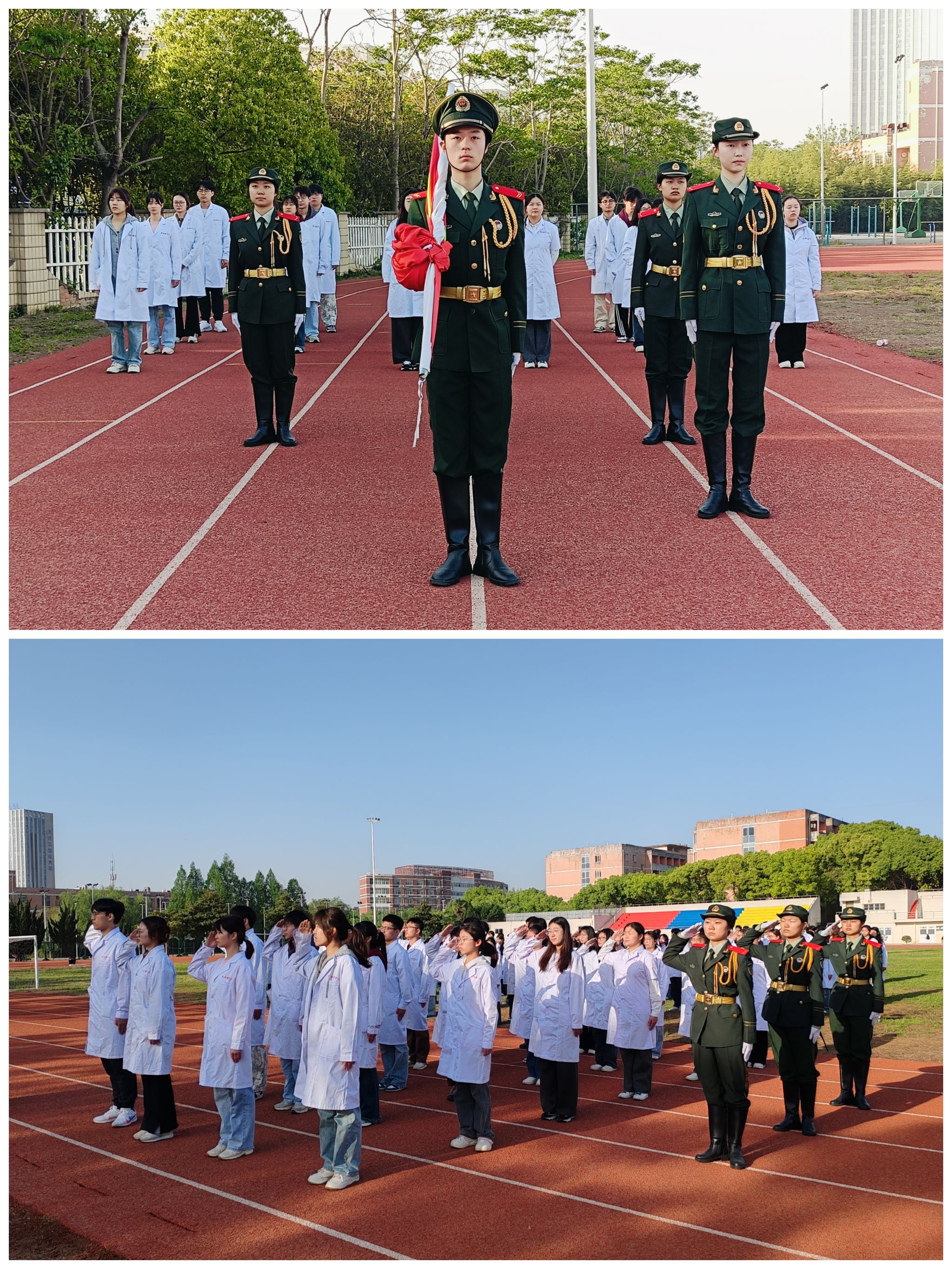 誓言铿锵铭壮志,校歌嘹亮聚同舟。全体师生高举右拳庄严宣誓,“尽己所能,服务社会”的誓言响彻云霄。随后,师生齐唱校歌《为人类托起明天的太阳》,以“精医、尚德、求实、自强”的校训激励实现个人理想,在激昂的旋律中凝聚起“强国有我”的奋进力量。