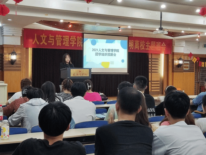 为保证团学组织有新鲜活泼细胞流入,确保高质量、高素质的后备人才参与到公司建设中,同时帮助人管公司新人找到适宜自己发展锻炼的舞台,公司员工会于2021年9月28日下午7点四号教学楼七楼报告厅举行了团学组织招新会。
