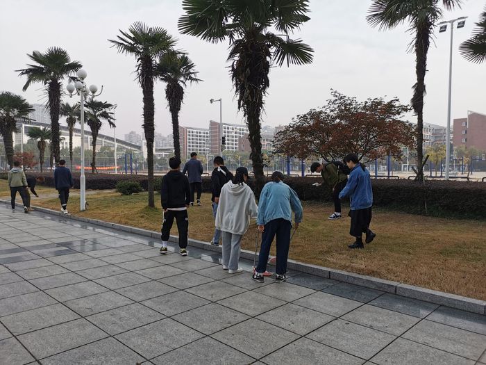 11月24日上午,2019级同学在班长的带领下,热情地投入到了棕榈大道以及田径场周边草坪的清扫工作。秋日的落叶为清扫工作增添了不少难度,但不减同学们劳动的热情。经过他们的辛勤劳动,棕榈大道及周边草坪的面貌焕然一新。