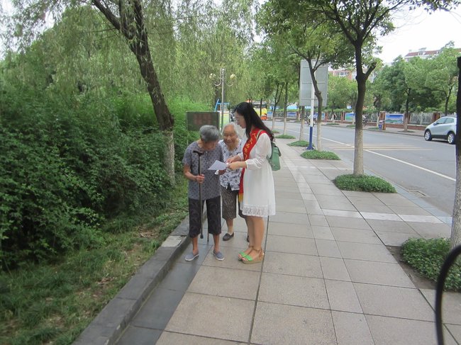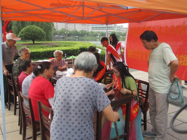 四、来到南瑞社区,为居民送上卫生服务 6月29日,“人文风、青春行”暑期“三下乡”社会实践团队前往芜湖市南瑞社区开展公共卫生服务活动,队员们在社区广场搭建帐篷并在帐篷内进行定点宣传,给社区居民测量血压和宣传防暑解暑的知识,炎炎烈日阻挡不了人管公司学子深入基层、服务群众的热情,在队员们的积极参与和努力下赢得了社区群众的一致好评。