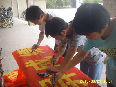 为严肃考风考纪,树立优良学风,6月23日中午,人文与管理系团委、员工会在公司二食堂门口广场开展了“以实力争取优异成绩,以诚信展现良好学风”为主题的诚信考试签名活动。在活动中,广老员工纷纷响应号召,在诚信考试的横幅上郑重签名,表示要认真复习,用优异的成绩展现我系良好的学风。