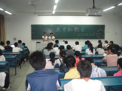 5月25日晚,人文与管理系团委员工会在西503教室举办“五月红歌会”,活动由员工会干部担任评委。系团委副书记吴映辉老师现场指导。