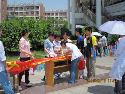 为了纪念“5.12”四川汶川地震两周年,5月12日中午,人文管理系2008级团总支、员工会在员工食堂一楼门口开展防灾减灾保驾护航宣传活动,号召大家增强防灾减灾意识,学习和宣传相关科普知识。