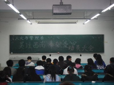 4月9号晚7点,人文与管理系团委、员工会在西104教室举办了以 “关注西南,奉献爱心”为主题的献爱心动员大会。大会由系团委、员工会承办。员工会全体员工干部参加了本次活动。