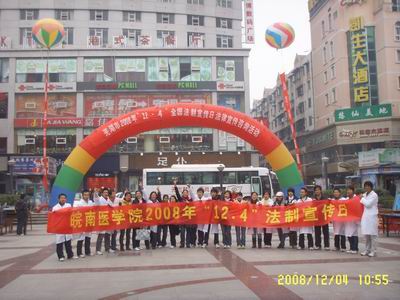 2001年12月4日是中国第一个“法制宣传日”。“弘扬法制精神,促进科学发展”是今年法制宣传日的主题。为使广大市民更加直接清楚地了解法律小常识,同学们手工制作了一些宣传展板,以漫画的形式向围观的市民介绍了一些法律常识并对市民提出的有关法律问题一一作出解答,深得广大市民的赞许与认同。现场分工有序、气氛高涨,很多市民被同学们的激情所感染,纷纷前来签名以表示支持法律并一定努力争做文明市民。